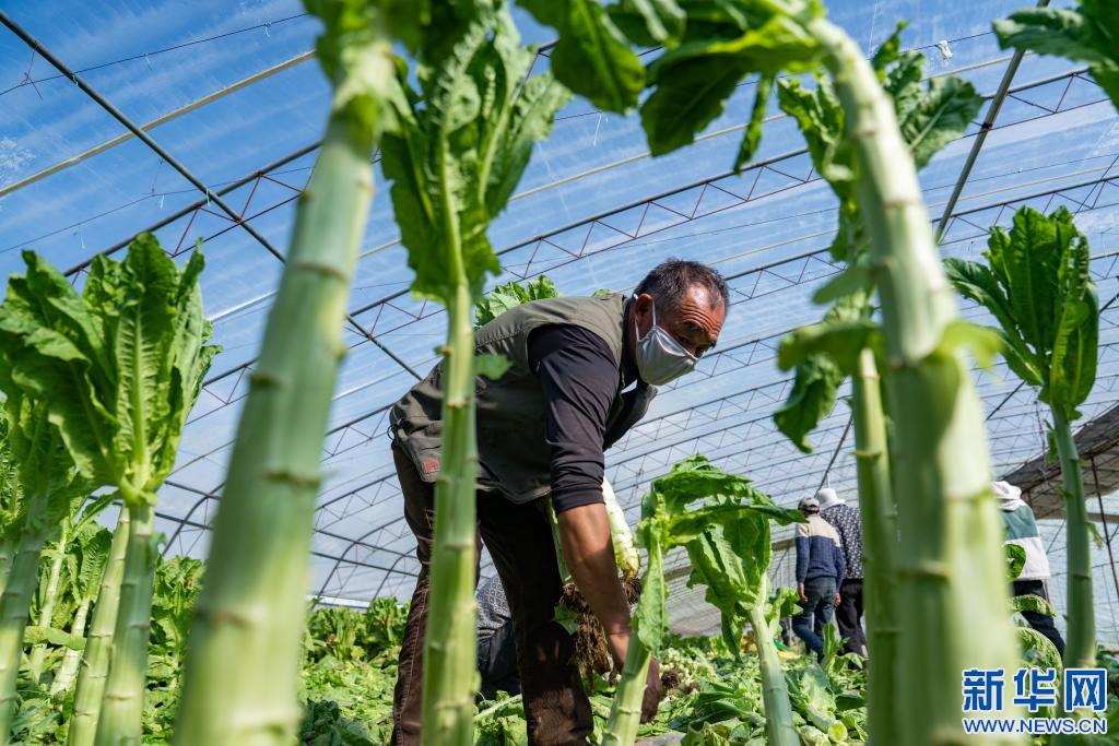 西藏曲水縣南木鄉江村的村民在大棚內采摘蔬菜(2020年2月20日攝)。 新華社記者 普布扎西 攝