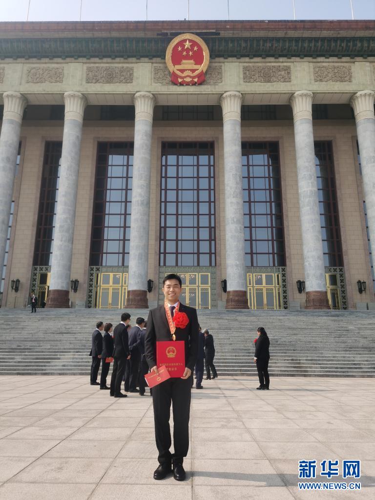 陳洪順榮獲全國脫貧攻堅先進個人稱號后,在北京人民大會堂前留影(2月25日攝)。新華社發