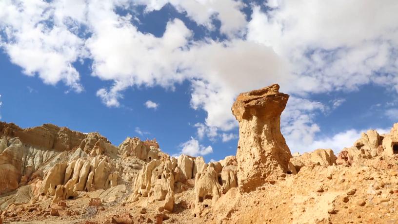 位于西藏阿里地區札達縣的桑達隆果墓地,東西區長4公里,分布著幾十座墓葬。迷宮一樣的墓室結構,單室、雙室、單雙墓道,令考古專家震驚。2018年西藏文物保護研究所和札達縣文物局組成考古隊,正式展開發掘。經過三個年度的考古發掘,測年數據顯示桑達隆果墓地從公元前300年至公元650年,延續了近千年。