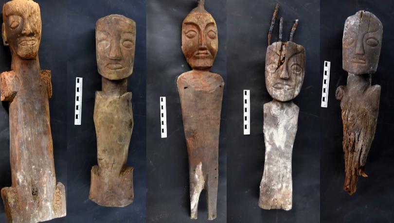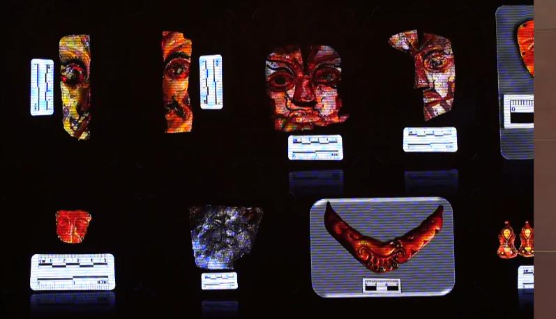 西藏自治區文物保護研究所副研究員、桑達隆果墓地考古發掘領隊 何偉:它們出土位置是臨近的,有彩繪的金銀面飾,它是敷于這個木俑的臉部的。