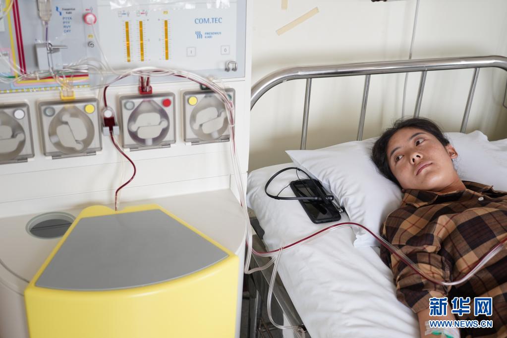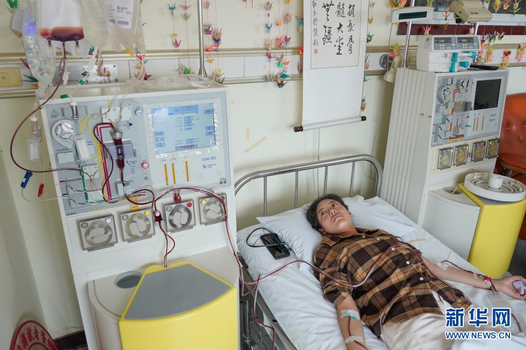 醫生摸著拉增的手和她聊天,造血干細胞整個采集時間需要近4個小時(資料圖片)。新華社記者 彭子洋 攝