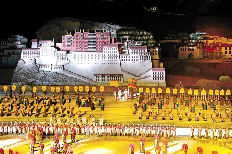 圖為《文成公主》大型實(shí)景劇演出現(xiàn)場(chǎng)。(資料圖片)記者 李洲 次旺 攝