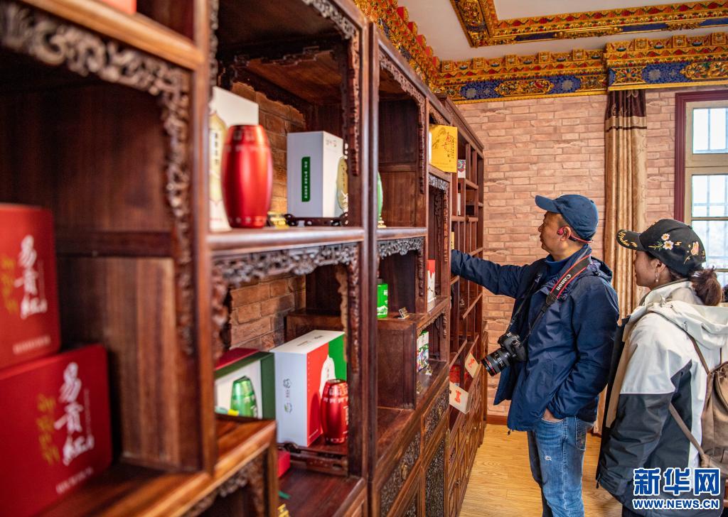 拉薩市北京路,崗堅茶葉股份有限公司門店內,一些造型獨特、包裝各異的茶葉產品吸引著顧客。