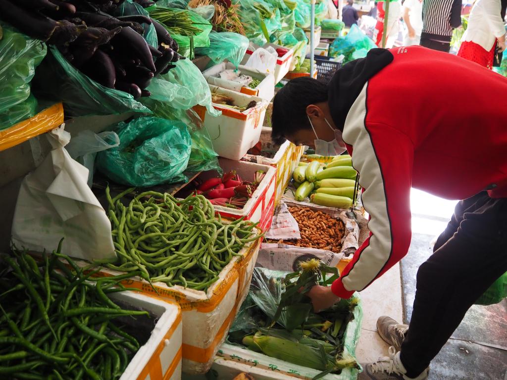 一大早,拉薩市民洛桑就來(lái)到離家不遠(yuǎn)的拉薩八一農(nóng)產(chǎn)品市場(chǎng)買(mǎi)菜。