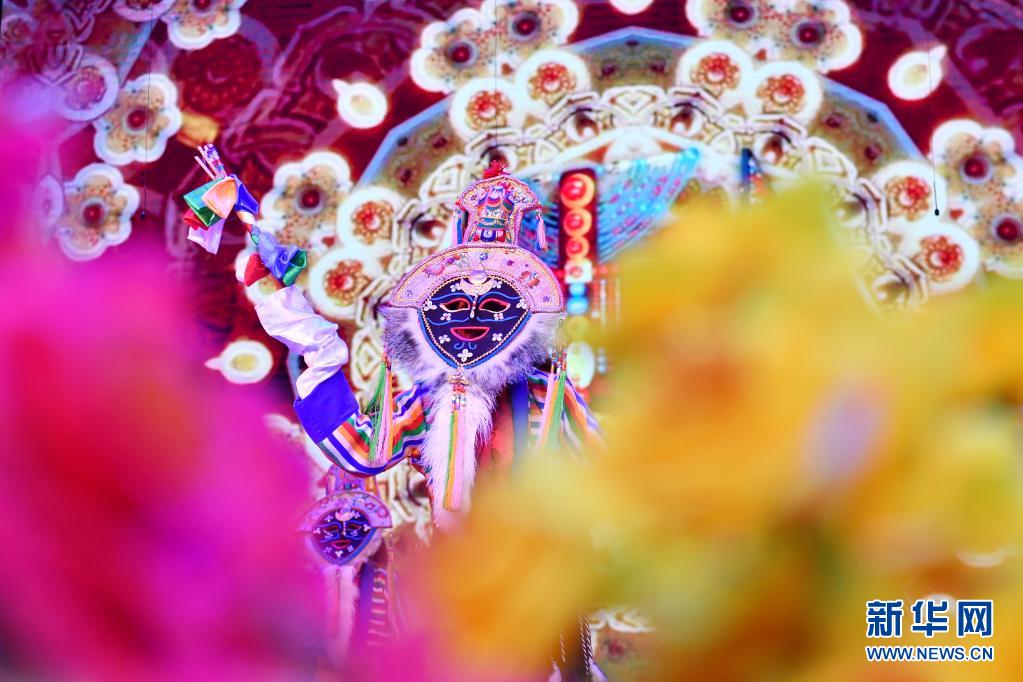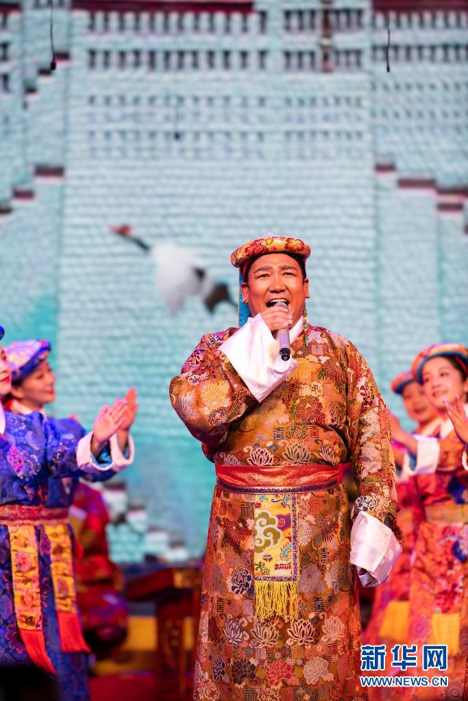 6月12日,在西藏拉薩市的自治區群藝館,演員表演藏戲《吉祥歡歌》。新華社記者 孫瑞博 攝