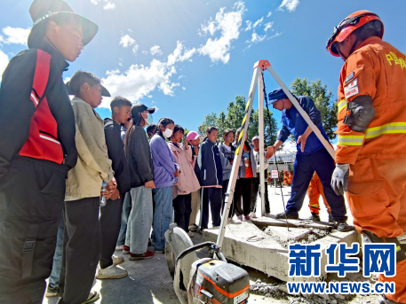 西藏自治區兒童福利院的孩子們到西藏森林消防總隊訓練大隊觀摩地震救援展示(6月14日攝)。甄小龍攝