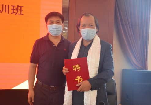 北京藏醫院院長仲格嘉(左)向明珠(右)頒發聘書,聘請明珠為北京藏醫院藏藥浴專題培訓班授課老師。