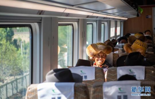 來自山南市貢嘎縣杰德秀鎮杰德秀村的巴珠,今年68歲,他一會兒從車窗眼望高山峽谷,一會兒摸摸車內現代化設施,這是他頭一次坐火車。“復興號和牛車比起來,像是在飛翔。”他笑著說。
