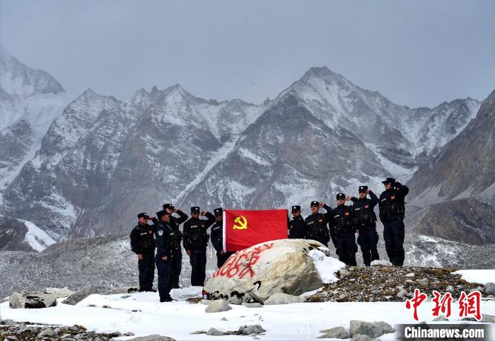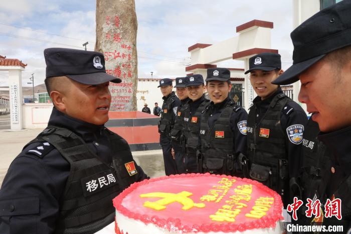 在全國海拔最高的行政鄉普瑪江塘,邊境派出所組織民警在轄區海拔5600米的崗布冰川開展邊境巡邏工作,并巧手制作了慶祝黨的100年主題生日蛋糕,用實際行動向建黨100周年獻禮。