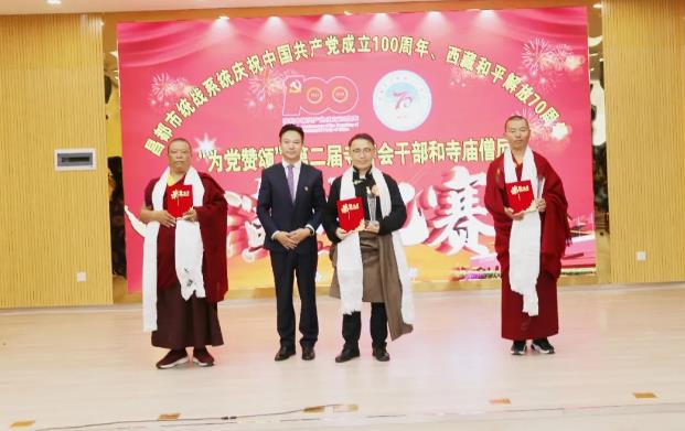 7月2日,昌都市委統戰部以慶祝中國共產黨成立100周年、西藏和平解放70周年“為黨贊頌”為主題,舉辦全市第二屆寺管會干部和僧尼演講比賽,市委常委、統戰部長,市政協黨組副書記澤仁俊美出席,市委宗教工作領導小組成員單位負責人和強巴林寺、卡若區寺管會干部代表、僧尼代表觀看了比賽。市委組織部、市委宣傳部、市委統戰部、市民委、市文化局、市宗教局等單位負責人擔任評委。