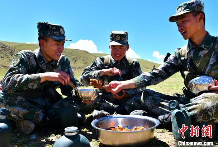 圖為西藏軍區某合成旅野外拉練官兵野餐現場。萬玲 攝