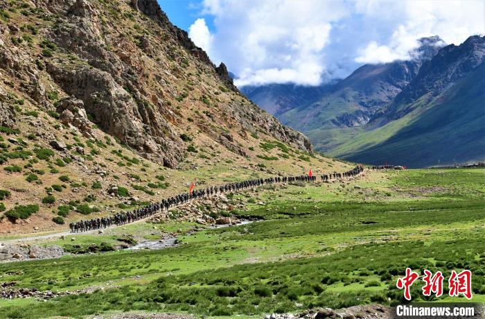 圖為西藏軍區某合成旅在野外拉練,隊伍負重前行。念美多杰 攝