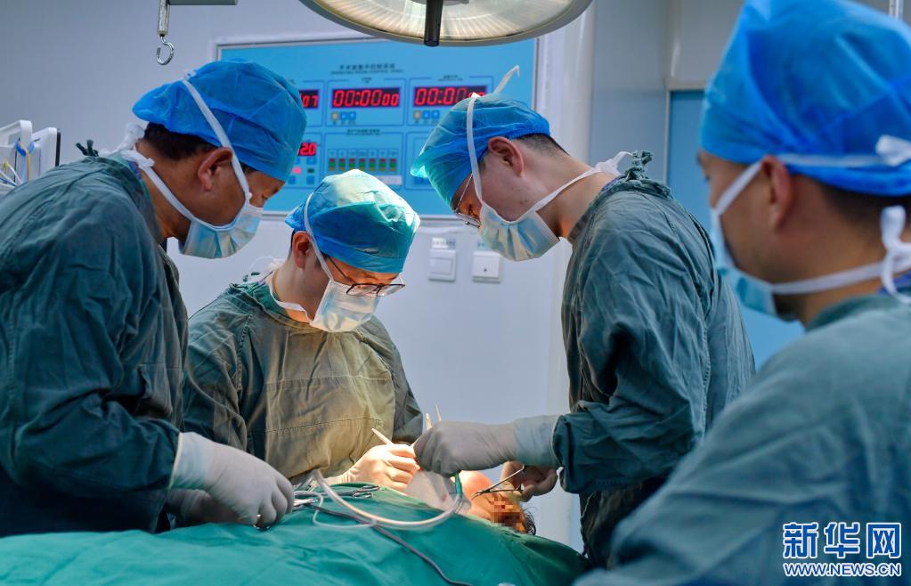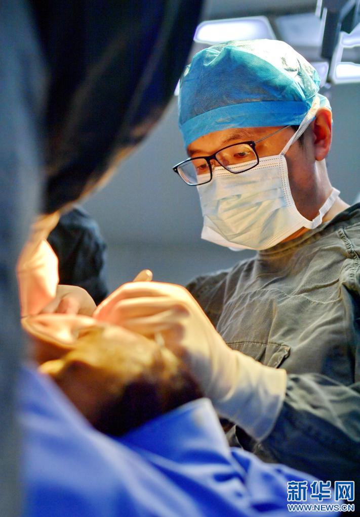 在西藏自治區人民醫院手術室,王克明為面部畸形患者做手術(5月11日攝)。新華社記者 張汝鋒 攝