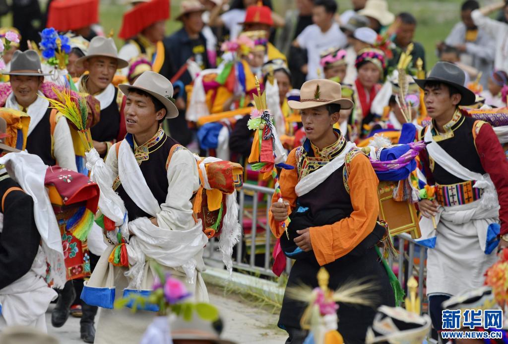 當日,易地扶貧搬遷新村——西藏山南市加查縣冷達鄉共康村的村民們身著盛裝歡度“望果節”。“望果節”是西藏農區在青稞麥田成熟之際祈求豐收的節日,據傳有1500多年的歷史,因各地青稞成熟時間不一,“望果節”時間也各異。