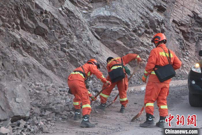 圖為消防指戰員清除碎石。昌都市森林消防支隊 攝
