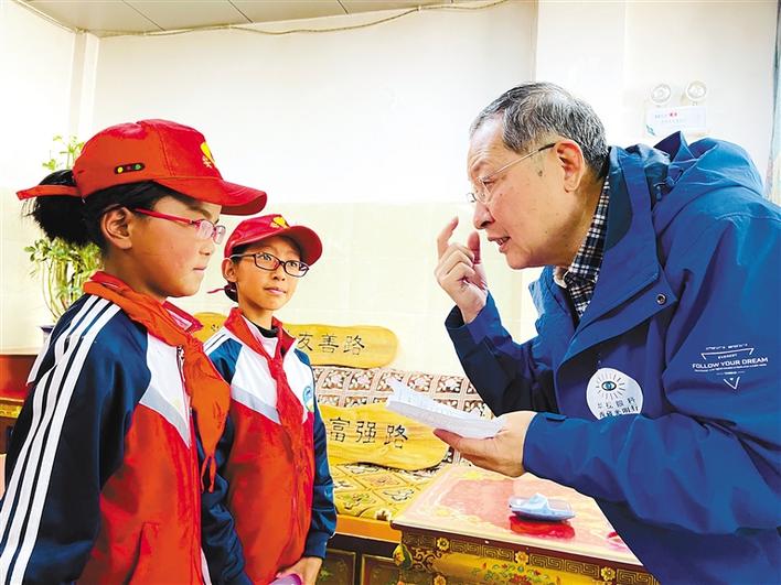 圖為濟南華視眼科醫院院長王利華為白朗縣小學生進行斜視弱視篩查。記者 陳林 攝