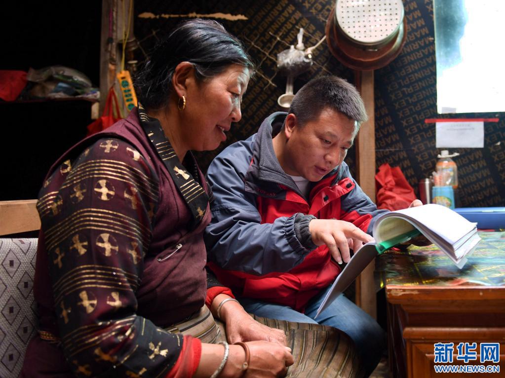 西藏山南市社保工作人員在隆子縣玉麥鄉玉麥村村民央宗家中進行社保信息補充登記。新華社記者 晉美多吉 攝