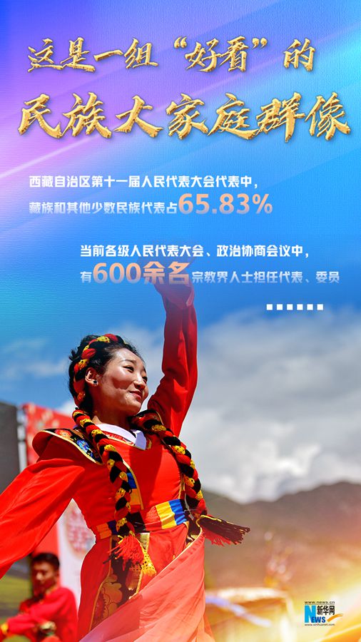 ▲西藏自治區第十一屆人民代表大會代表中,藏族和其他少數民族代表占65.83%。