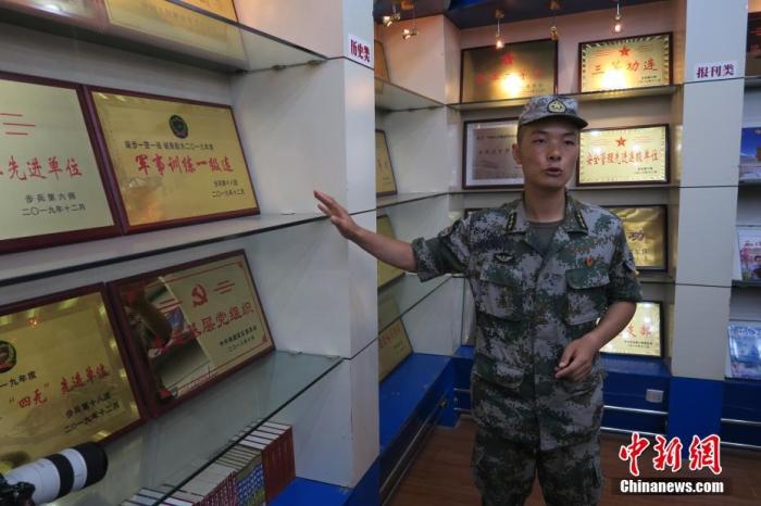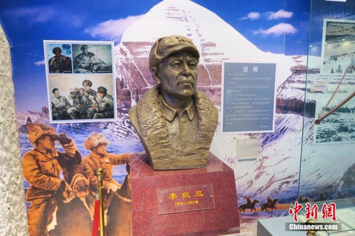 近日,中新社記者隨采訪(fǎng)團(tuán)重走上世紀(jì)50年代中國(guó)人民解放軍進(jìn)藏先遣連的入藏路線(xiàn)。圖為南疆軍區(qū)某合成團(tuán)1連榮譽(yù)室,雕像是進(jìn)藏先遣英雄連總指揮李狄三。 中新社記者 楊程晨 攝