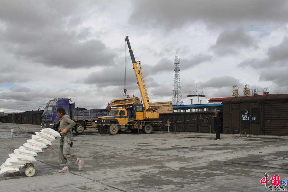 那曲物流中心是世界海拔最高,面積最大的物流中心,貨場面積533.6萬平方米,主要到達(dá)的物資有鋼鐵、水泥、木材、糧食、鹽等基建、生活物資。 中國網(wǎng)記者 鄭亮攝