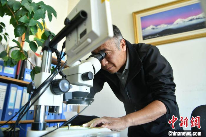 圖為方震東在香格里拉高山植物園觀察植物。劉冉陽 攝