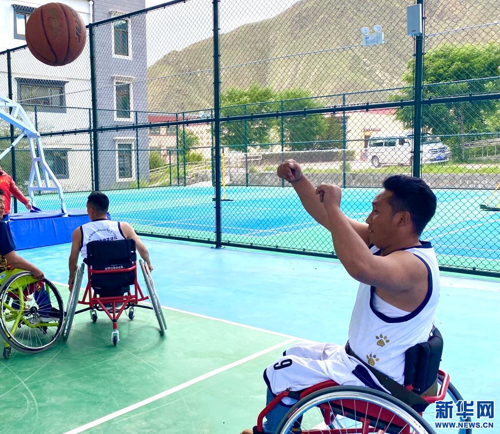 “走,打籃球去!”坐在輪椅上的覺列趁著周末,招呼他的朋友們來到拉薩市殘疾人托養中心的籃球場打球。
