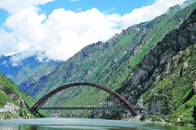 藏木雅魯藏布江雙線特大橋全長525.1米,主拱跨徑430米。新華社記者 劉洪明攝