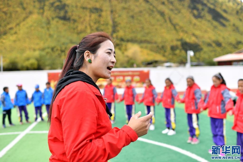 在西藏林芝市波密縣多吉鄉中心小學,央宗給學生們傳授“波央”的發音技巧(2020年10月13日攝)。新華社記者詹彥 攝