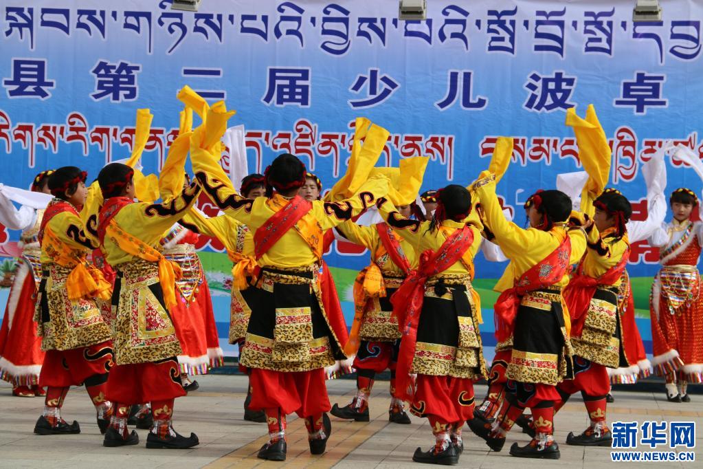 參加西藏波密縣第二屆“少兒波卓波央比賽”的孩子們在表演(2016年10月25日攝)。新華社發 普文平 攝