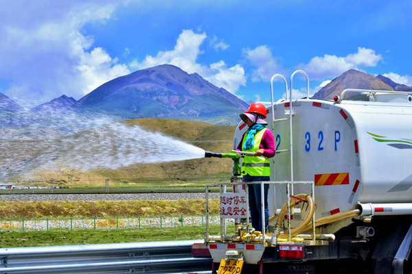 在惡劣條件下,是如何打造的?中國中鐵那羊高速四分部項目經理陳永豐介紹:“都是在草甸恢復基礎上進行的。剝離的草甸堆放在沿線,覆以遮陽網,定時澆水養護。路基建好后,將其復植至邊坡等地。打好基礎后,選用了更適應高原環境的鄉土草(花)種?!?/p>