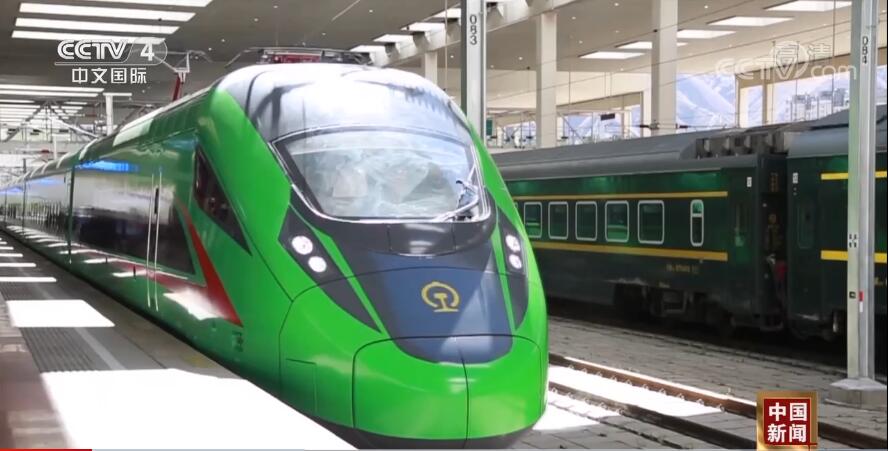 總臺央視記者 宋達:我現在乘車來到拉林鐵路的林芝站。今年6月25日,拉林鐵路正式開通運營,這標志著川藏鐵路的建設取得了重大進展,也意味著復興號首次駛上了青藏高原,結束了藏東南地區不通鐵路的歷史。我們可以看到拉林鐵路的復興號列車被設計成了綠色的外觀,有人形象地把它說成“綠巨人”。