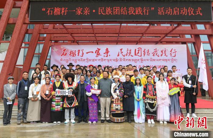 圖為學(xué)生們在第五屆西藏青少年民族團結(jié)教育實踐營活動啟動儀式上合影留念。 貢嘎來松 攝