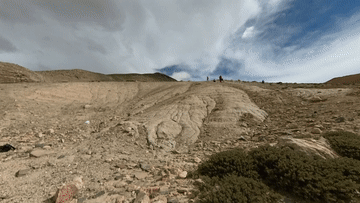 在喜馬拉雅山脈東部一個山腳下,滿臉胡須、面部黝黑、嘴唇皸裂的科考隊員王昊,指著垂直地面高達百米的沉積剖面說,從這些大型傾斜層理可以看出,數萬年前,西藏日喀則市定結縣區域內存在一個巨大的堰塞湖。