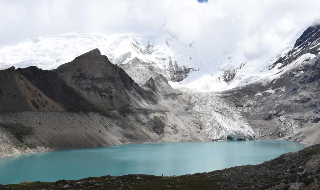 西藏日喀則市亞東縣境內,超過海拔5000米的冰川下有一個湖泊——朗錯。通過分析壩體形態特征,科考隊初步分析判斷這是一個冰川終磧體形成的堰塞湖,即冰湖。冰湖是喜馬拉雅山脈常見的堰塞湖類型之一。