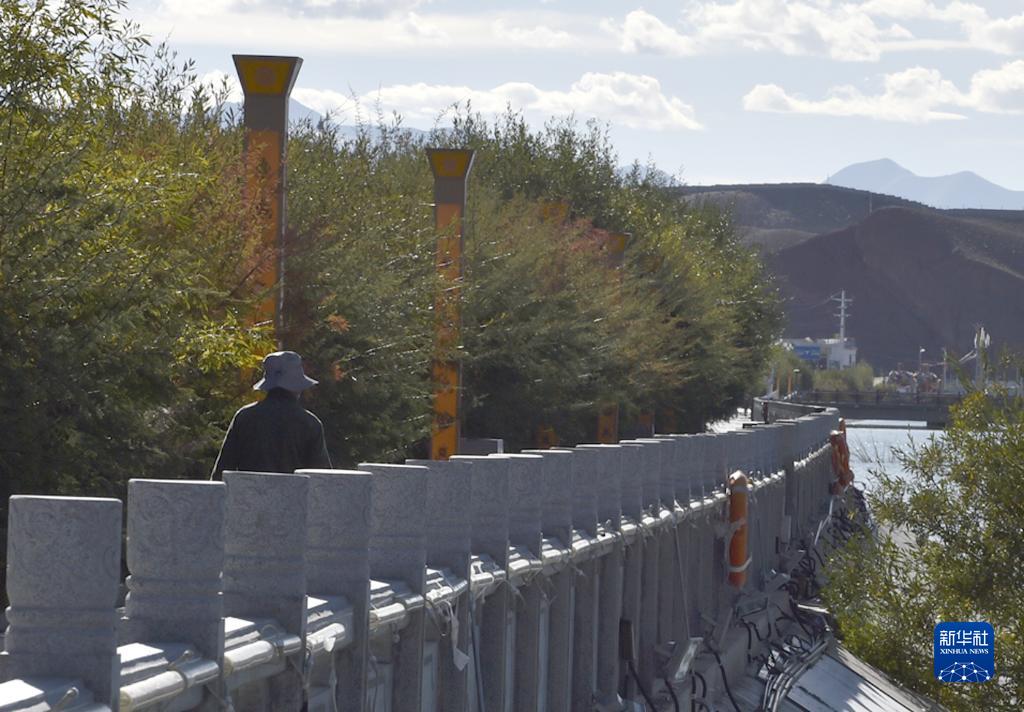 西藏阿里獅泉河鎮道路旁邊綠樹成蔭(9月19日攝)。新華社發 (索朗羅布 攝)