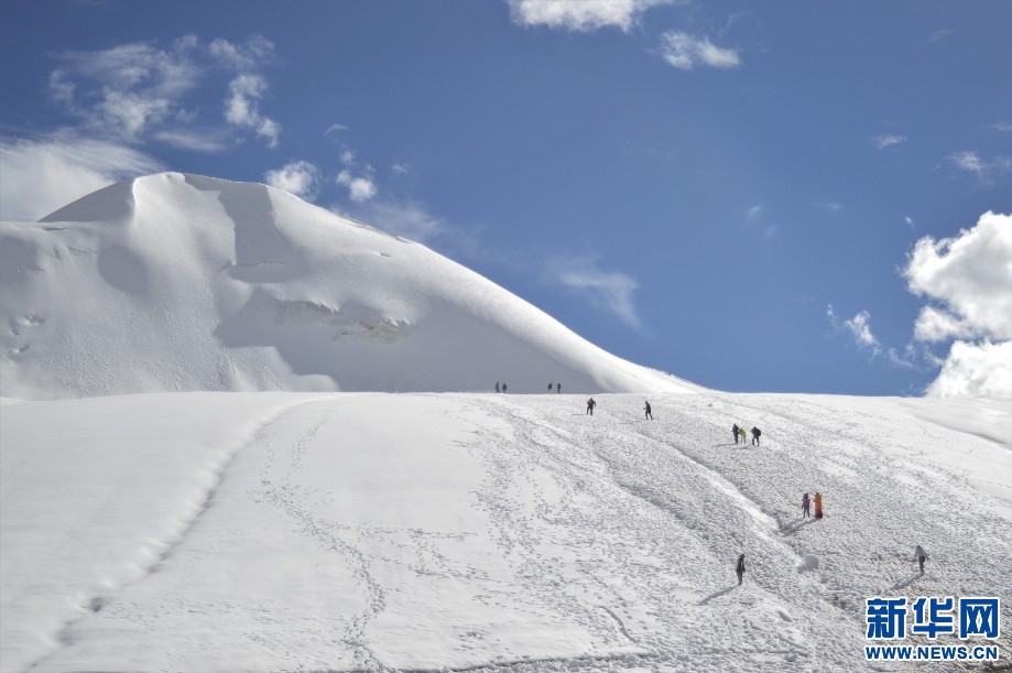 圖為游客攀爬廓瓊崗日冰川(9月14日攝)。新華網 貢桑央吉攝(實習生)