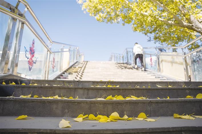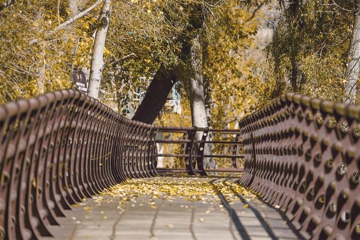 陽光溫暖地包裹著大地,穿過草木,穿過人群,在地上折射出好看的光影。樹木一排排整齊站立著,樹葉時不時隨風飄落,落在地面,鋪作一地金色的地毯,行人走過,發出“沙沙”的聲響,伴著人們的說笑聲,格外動聽美妙。