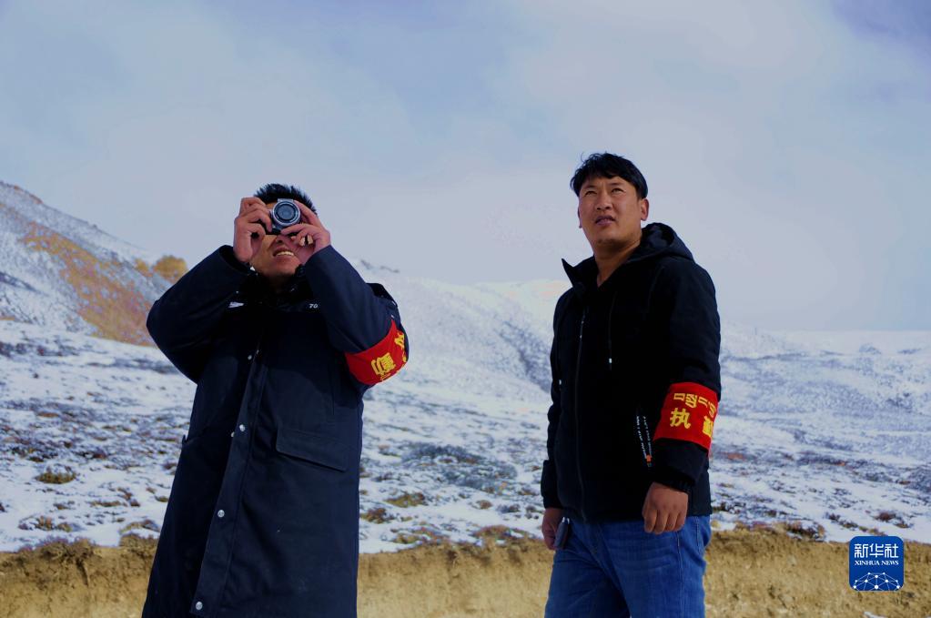 高原初冬,喜馬拉雅山脈的溝壑間又覆蓋了一層薄雪。歐珠多吉和巴卡村村民索朗益西發動皮卡車,再次前往型欽牧場執勤點。他們身后,是每家每戶迎風招展的五星紅旗以及縈繞在空中的縷縷炊煙。