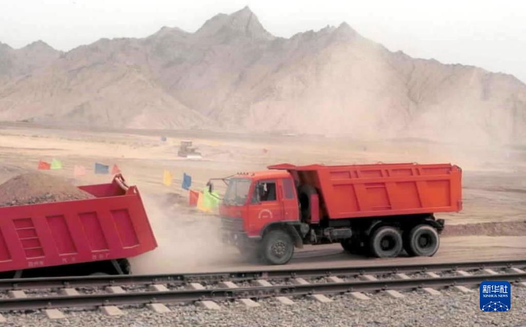 2001年6月29日,青藏鐵路二期工程格爾木至拉薩段鐵路正式動工修建。格爾木市南山口車站是格拉段鐵路的起點。圖為南山口施工現場。新華社記者 高學余 攝