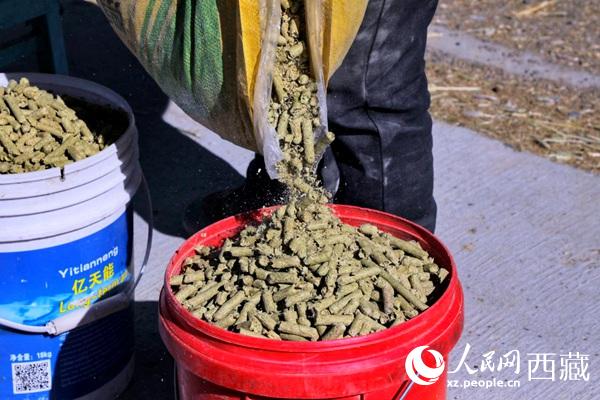 在合作社有一間飼草加工車間。嘎瑪旦達介紹:“下一步我們要結合鄉村振興,增加飼草的附加值,將青干草充分利用起來,生產顆粒飼料。目前,車間在試運行階段。已經加工了160噸。這些飼料中混合了玉米、大豆等,既提高了青干草的利用率和營養價值,也降低了運輸成本,很受市場歡迎。我們還想做綠色商標,打品牌知名度。”
