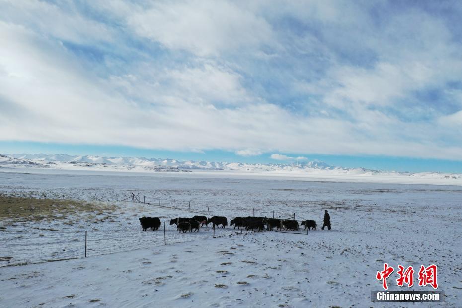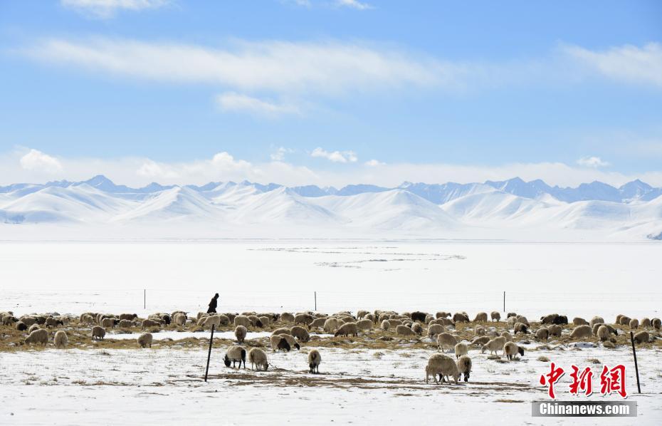 1月26日,牧民在納木錯湖邊放牧。雪后的西藏納木錯銀裝素裹,美景如畫。 中新社記者 貢嘎來松 攝
