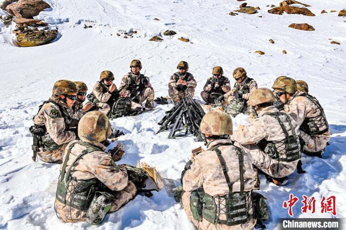惡劣的自然環境讓巡邏路倍加艱難,但是官兵們依然樂觀,中途修整,大家還是圍坐在雪地上,拿出單兵自熱食品,開心飽餐,有說有笑。官兵們說,現在的自熱食品營養搭配很好,能很好地補充體力。況且大家都穿了新型的巡邏服,有加熱背心等,能幫助大家抵御山口的大風、暴雪。