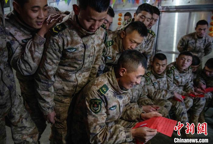 聯歡的尾聲指導員夏邦國拿著最后的彩袋走到臺前,把晚會推向高潮,“兄弟們,這還有一大袋紅包,里面裝著的可是最珍貴的祝福”。官兵們用抽盲盒的形式拆開新年的“紅包”。中士趙路寬抽到一個最鼓的,打開是滿滿的糖果;下士吳兵拆開的是一個帶有小機關的新年賀卡;下士鄧云川拆到一封遠方的匿名信,“雖不曾相見與相識,但知道是你們在默默堅守付出,守衛著祖國的雪域邊防”。伴隨著他磕絆的普通話,連隊官兵漸漸安靜下來。“邊關有我,請祖國和人民放心”,簡易投影的大屏上開始播放著官兵們一年多來頂風冒雪,戰天斗地的光影片段,在這大山里的多少的苦累酸甜,都已經鐫刻在茫茫雪域。
