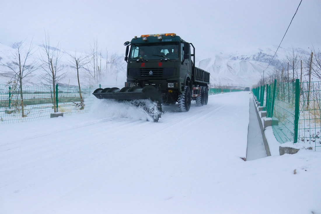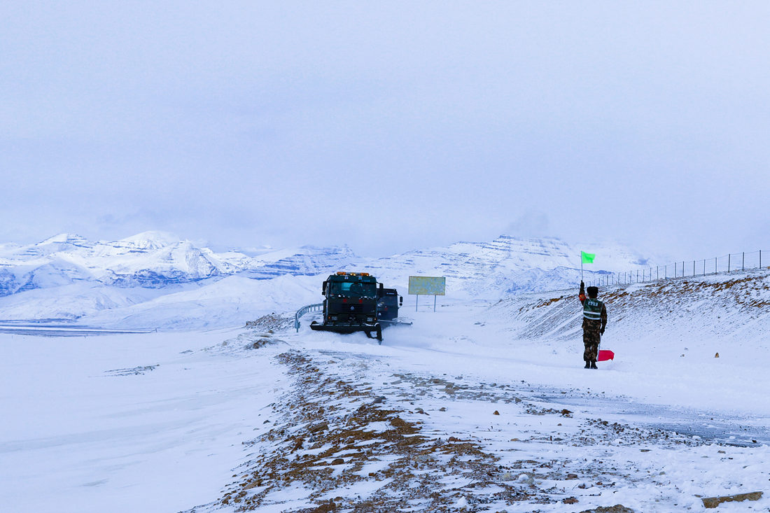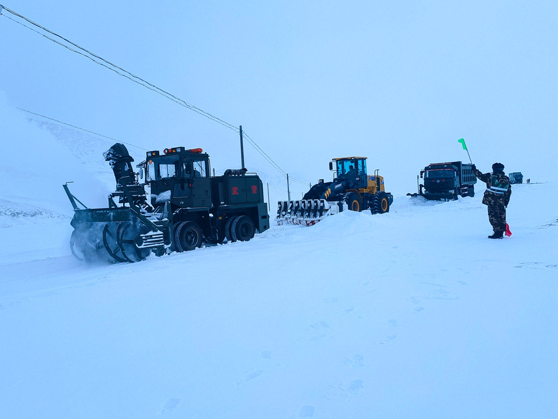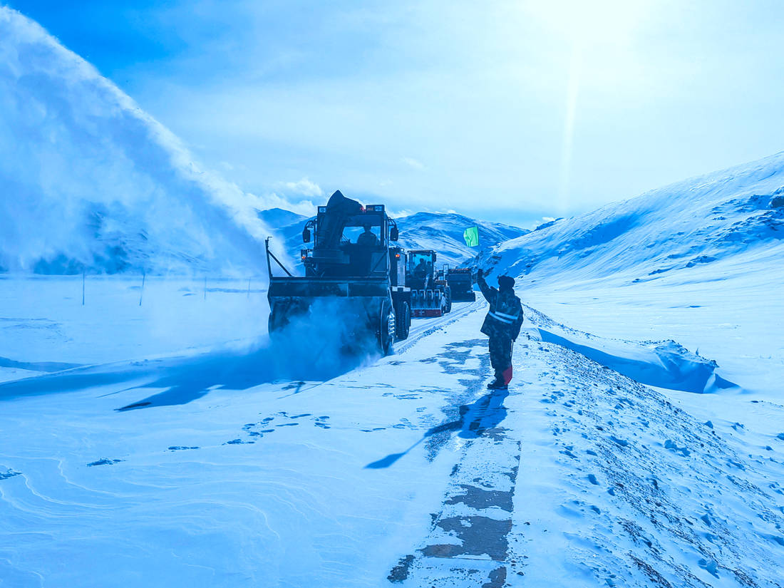因?yàn)?zāi)害現(xiàn)場地處平均海拔4000多米以上海拔,持續(xù)降雪不斷,加之氣溫低至零下20多攝氏度,給整個(gè)道路搶通工作帶來了不少難度。為盡快清理路面積雪搶通道路,武警官兵采取“人歇機(jī)不停、分段搶通、先通后拓”的方法進(jìn)行全力搶通,克服了高寒缺氧及紫外線強(qiáng)烈等重重困難。