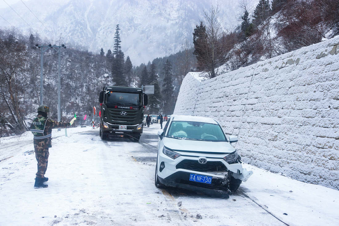 截止2月6日12時(shí)30分,經(jīng)過武警官兵連續(xù)4天的艱苦戰(zhàn)斗,因降雪受阻的川藏線和新藏線已恢復(fù)道路通行,受阻滯留的車輛人員,在武警官兵的指揮下全部安全順利通過。目前,武警官兵還在持續(xù)對部分背陰結(jié)冰嚴(yán)重路段進(jìn)行破冰處理。