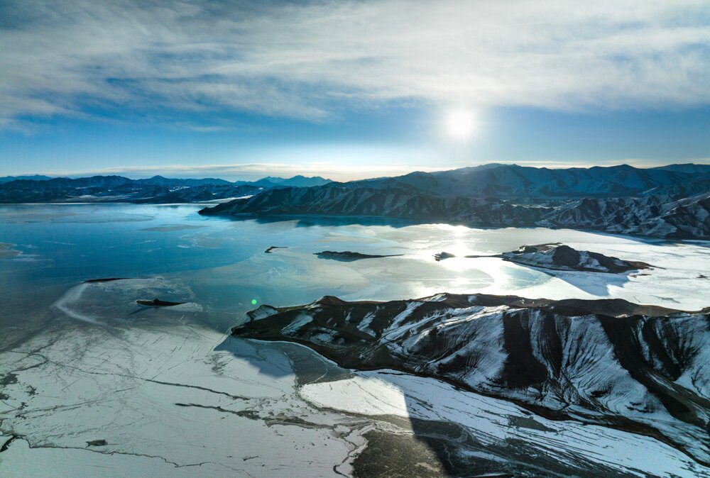 阿里日土縣境內航拍拍攝冬季班公湖。