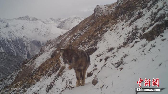 資料圖為2021年11月4日在西藏自治區(qū)丁青縣境內(nèi)由紅外相機(jī)拍攝到的狼活動影像。 中新社發(fā) 山水自然保護(hù)中心 供圖