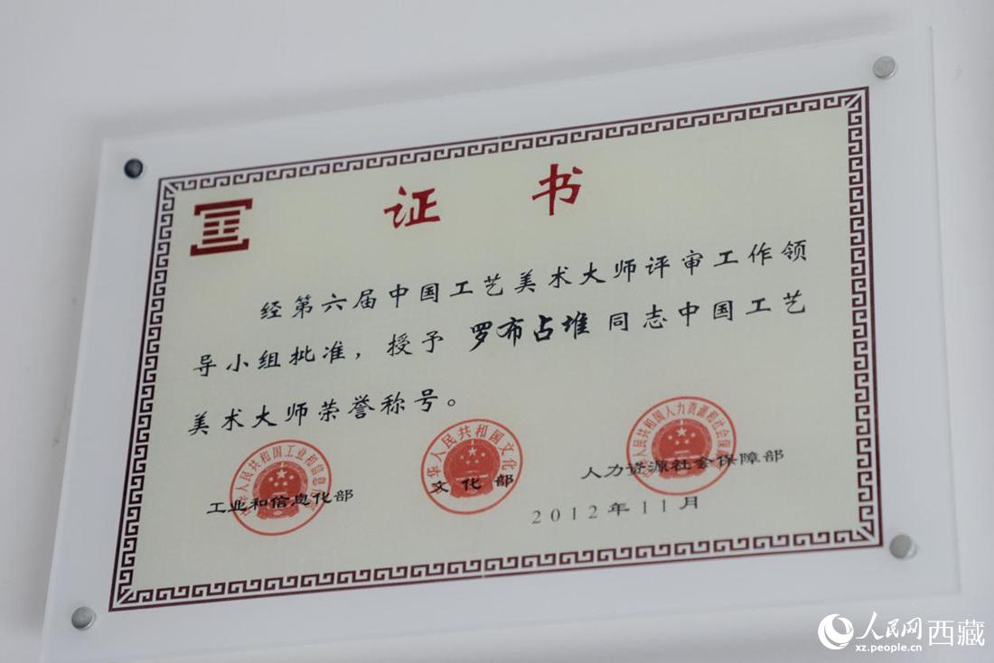 2012年傳承人羅布占堆獲中國(guó)工藝美術(shù)大師稱號(hào)。人民網(wǎng) 次仁羅布攝