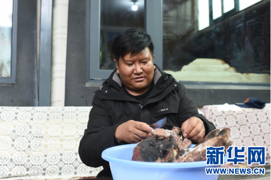 2月27日,在榮瑪鄉高海拔生態搬遷點村民達娃次仁在清洗羊頭。新華網 旦增努布 攝