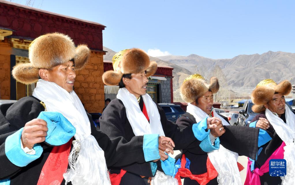 3月3日,西藏山南市貢嘎縣崗堆鎮農民唱歌跳舞,歡度藏歷水虎新年。新華社記者 覺果 攝